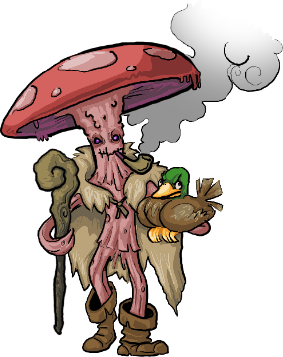 Hermits are accustomed to living alone, spending their time to commune with spirits and cosmic energy. Ascetic isolation is interrupted by wild ducks with surprising frequency, who claim Hermits as their mates for life, and may occasionally lead them into adventure. Hermits take special pride in crafting a shillelagh over months or years, which they wield with efficiency to defend themselves and their beloved ducks.