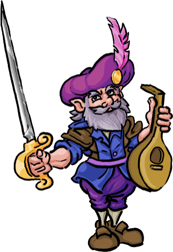 The jolly minstrel! The best bards tell true tales of the adventures they share with a heroic party. While on a gloomy quest, a little levity goes a long way. The Bard brings that, plus a swift blade.